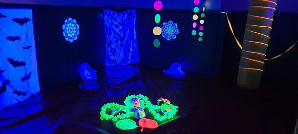 Es erwartet euch ein Nachmittag voller fantastischer Spielideen und erstaunlicher Dinge. Mit Hilfe von Schwarzlicht machen wir Schwarzes unsichtbar und bringen Weißes und Farbiges zum Leuchten. Durch die unendlichen Möglichkeiten des Schwarzlichtes lassen wir Gegenstände schweben, sich bewegen oder ganz verschwinden. Dabei werden ganze Geschichten entstehen. Lasst euch in der magischen Welt des Schwarzlichts verzaubern und begebt euch mit euren Freund*innen auf eine geheimnisvolle Reise.